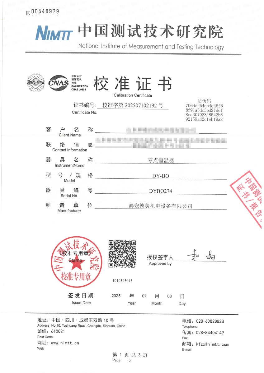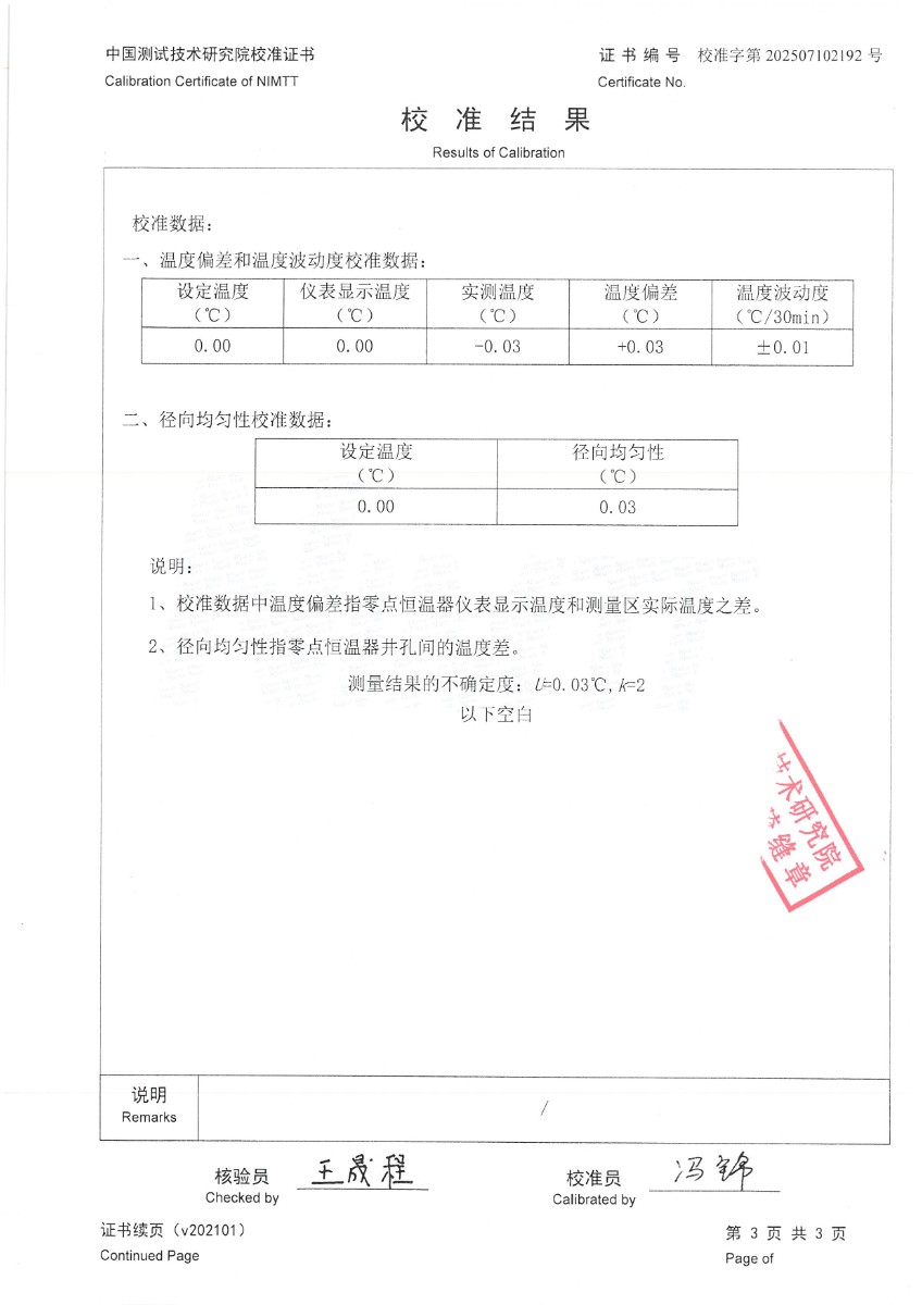 零點恒溫器校準(zhǔn)證書 2025-7-10 本文被閱讀 3485 次