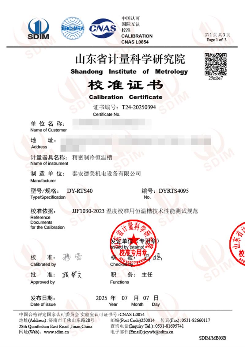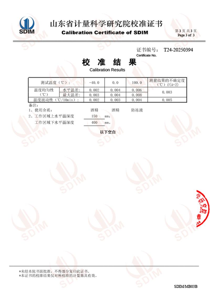 制冷恒溫槽(-40-100℃)校準(zhǔn)證書(shū) 2025-7-10 本文被閱讀 3719 次