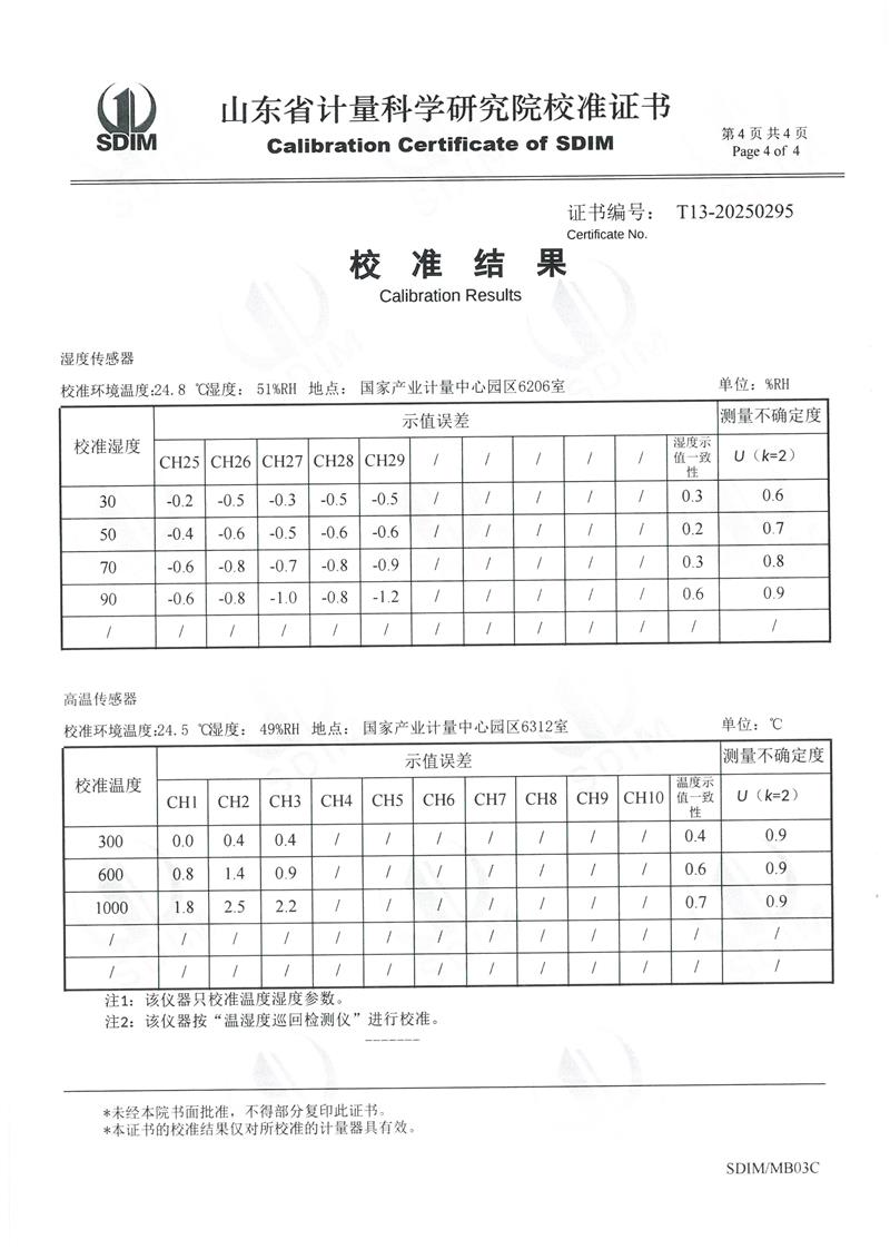 溫濕度巡檢儀校準(zhǔn)證書