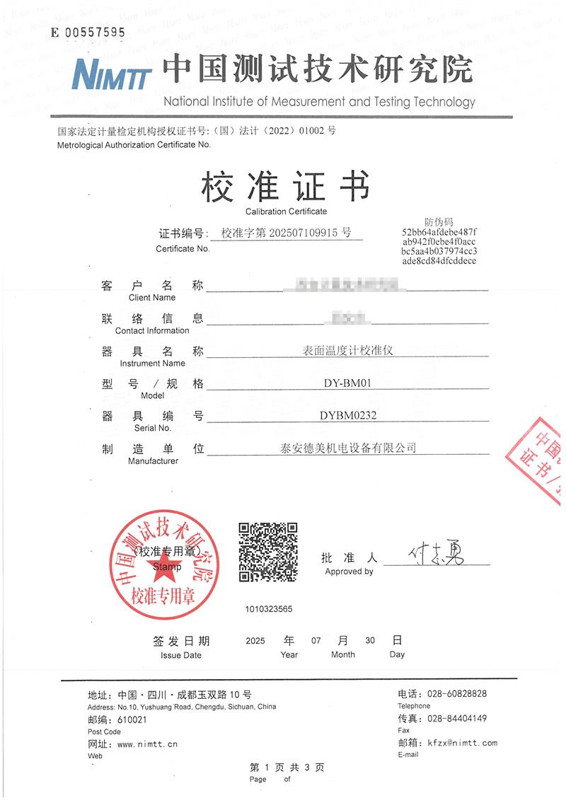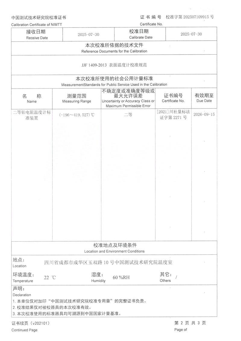 表面溫度計校準儀(40-400℃)校準證書 2025-8-6 本文被閱讀 3031 次