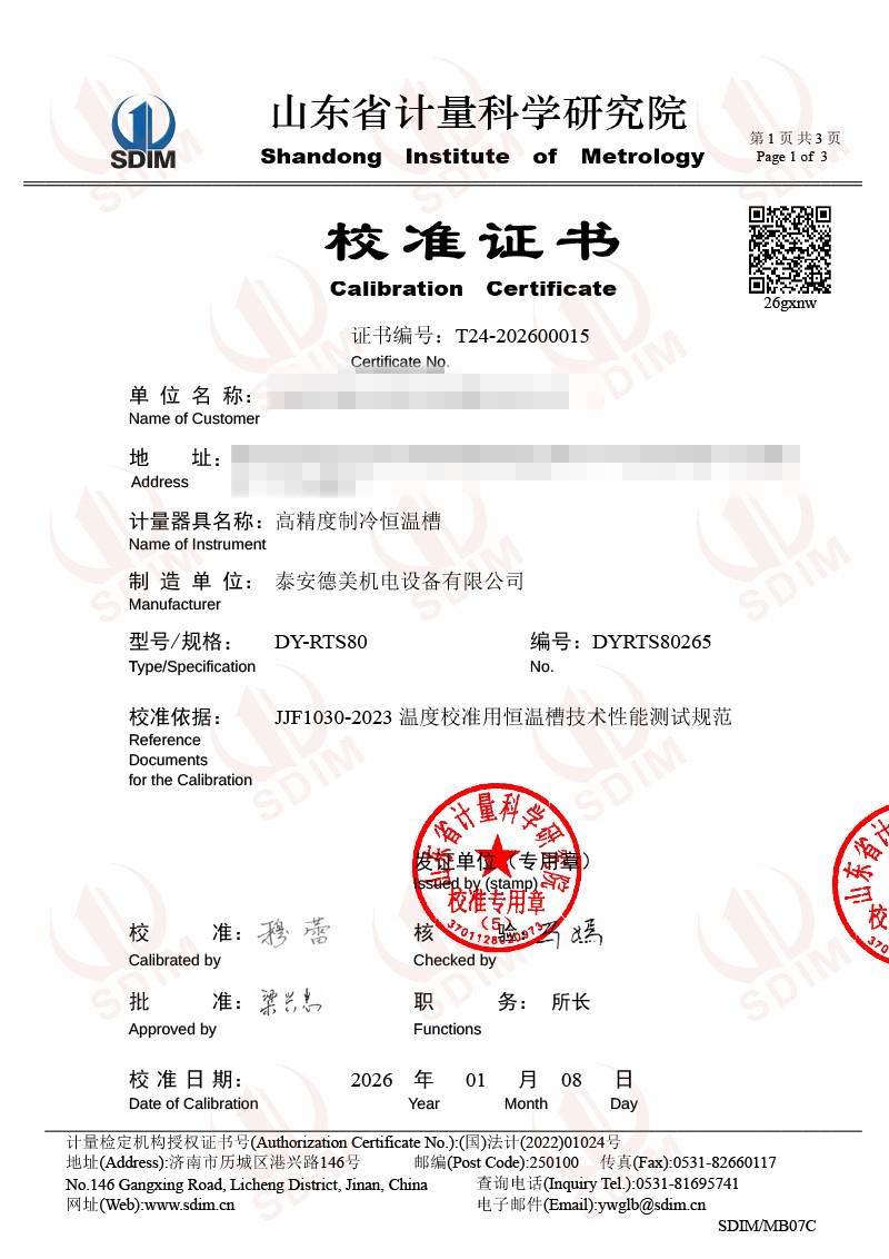 高精度制冷恒溫槽(-80~95℃)校準(zhǔn)證書 2026-1-13 本文被閱讀 462 次