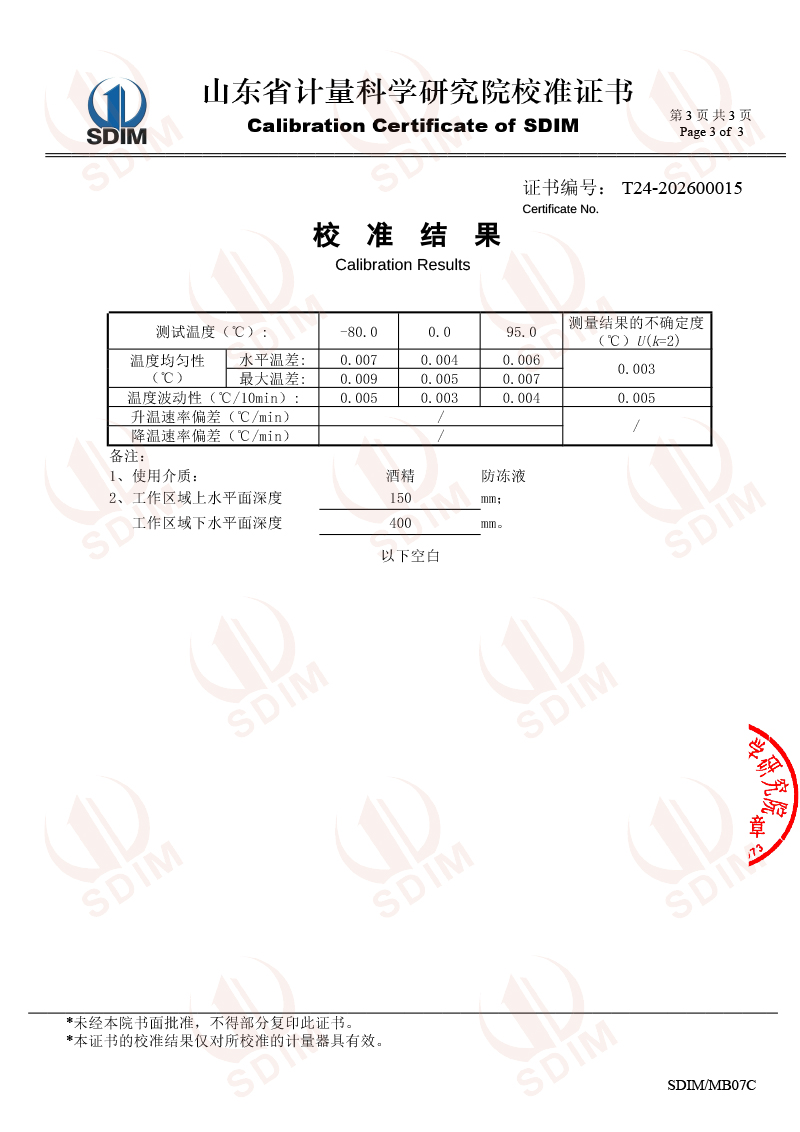 高精度制冷恒溫槽(-80~95℃)校準(zhǔn)證書