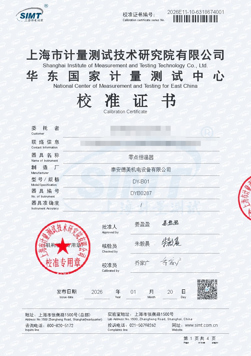 零點恒溫器-校準證書 2026-1-26 本文被閱讀 83 次