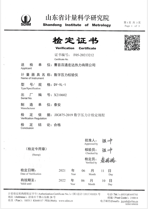 曹縣百通宏達熱力有限公司-數(shù)字壓力校驗儀 2021-6-23 本文被閱讀 16143 次