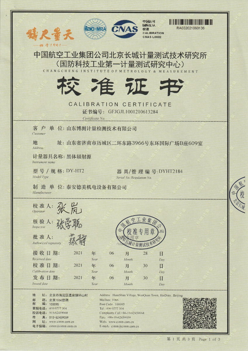 山東博測(cè)計(jì)量檢測(cè)技術(shù)有限公司-黑體輻射源 2021-7-7 本文被閱讀 14297 次