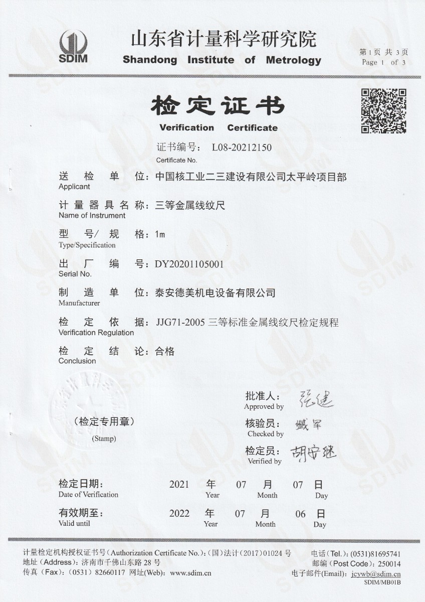 中國核工業(yè)二三建設有限公司太平嶺項目部-三等金屬線紋尺 2021-7-21 本文被閱讀 16673 次