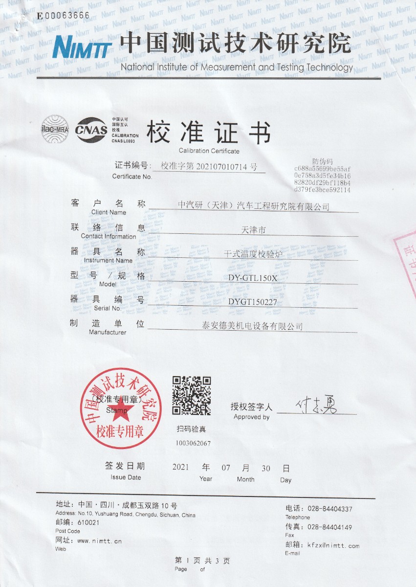 中汽研(天津)汽車工程研究院有限公司-干式溫度校驗爐 2021-8-6 本文被閱讀 21407 次