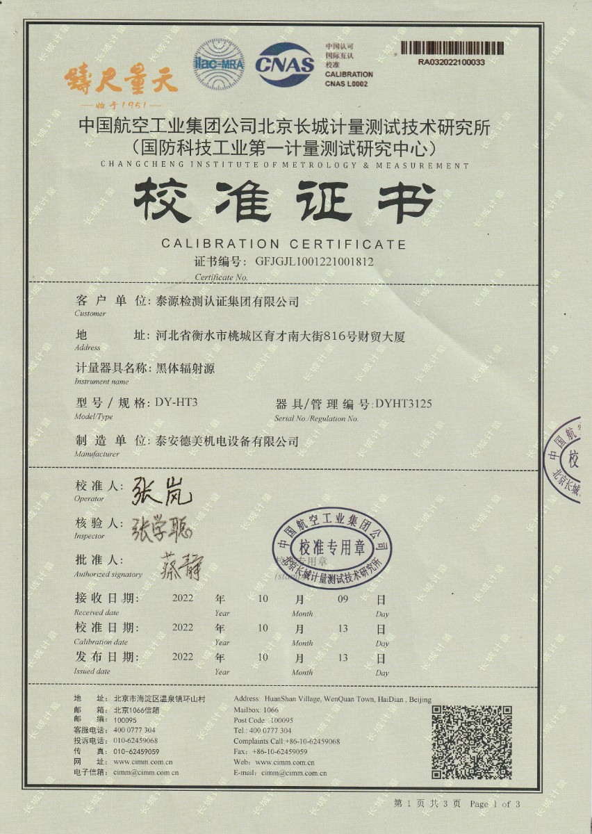泰源檢測認證集團有限公司-黑體輻射源 2022-10-31 本文被閱讀 14992 次