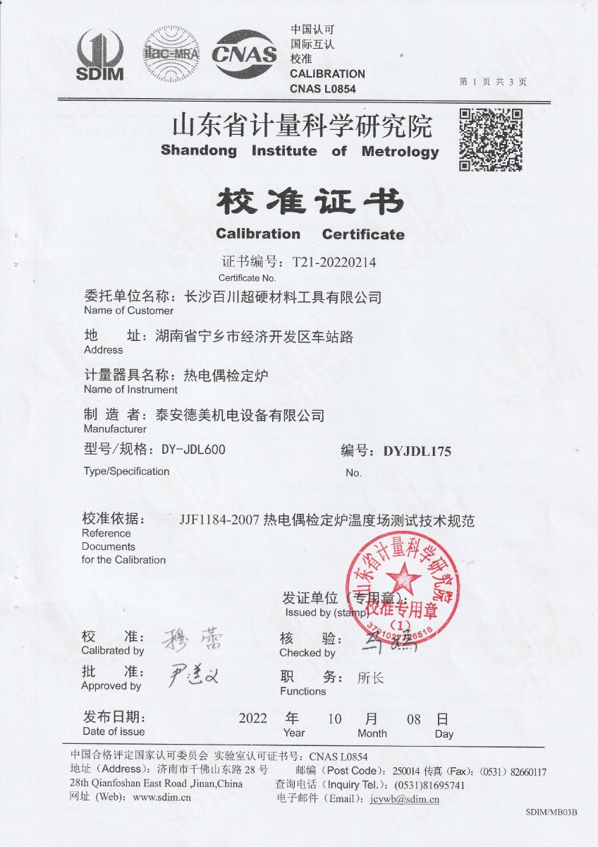 長沙百川超硬材料工具有限公司-熱電偶檢定爐 2022-11-9 本文被閱讀 13679 次