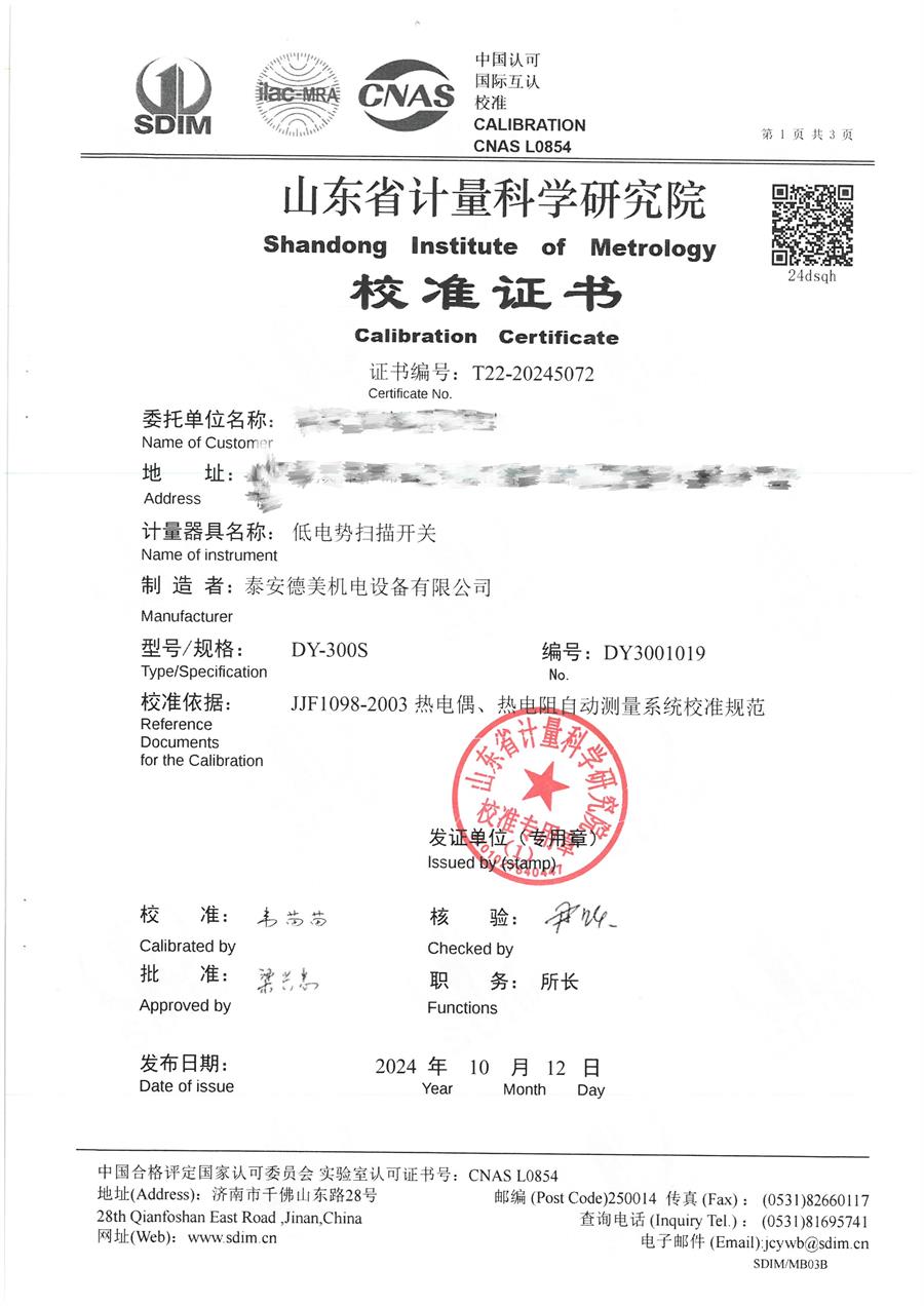 低電勢掃描開關校準證書 2024-10-15 本文被閱讀 6069 次
