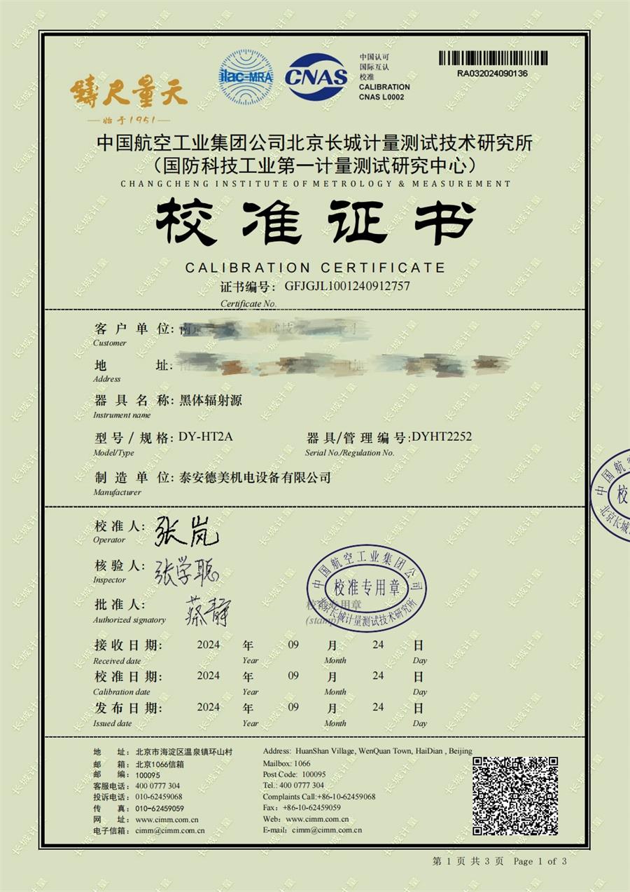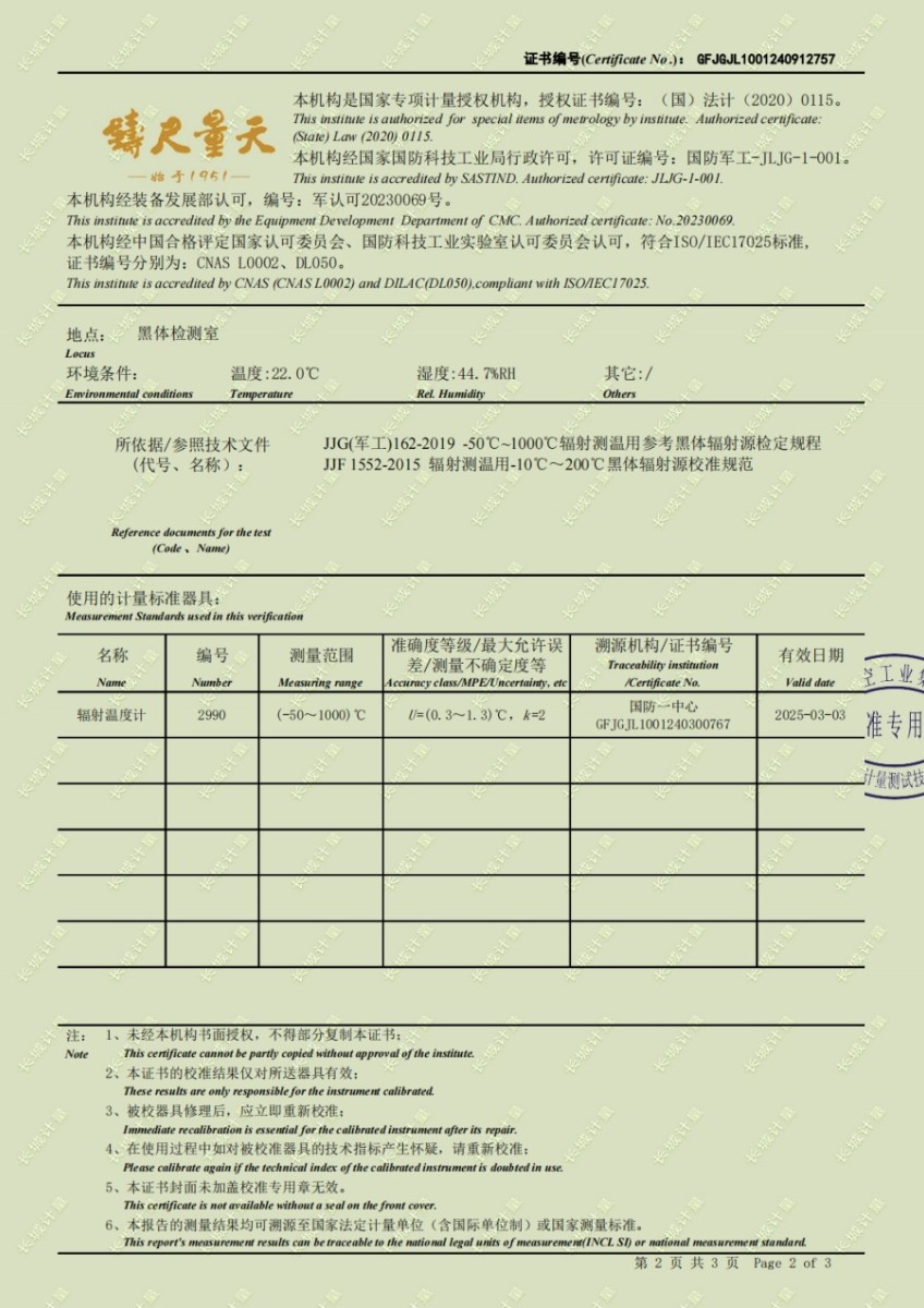 黑體輻射源(50-700℃)校準證書 2024-10-17 本文被閱讀 6445 次
