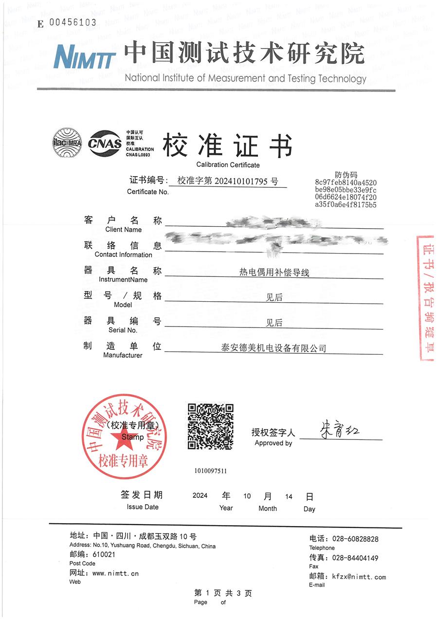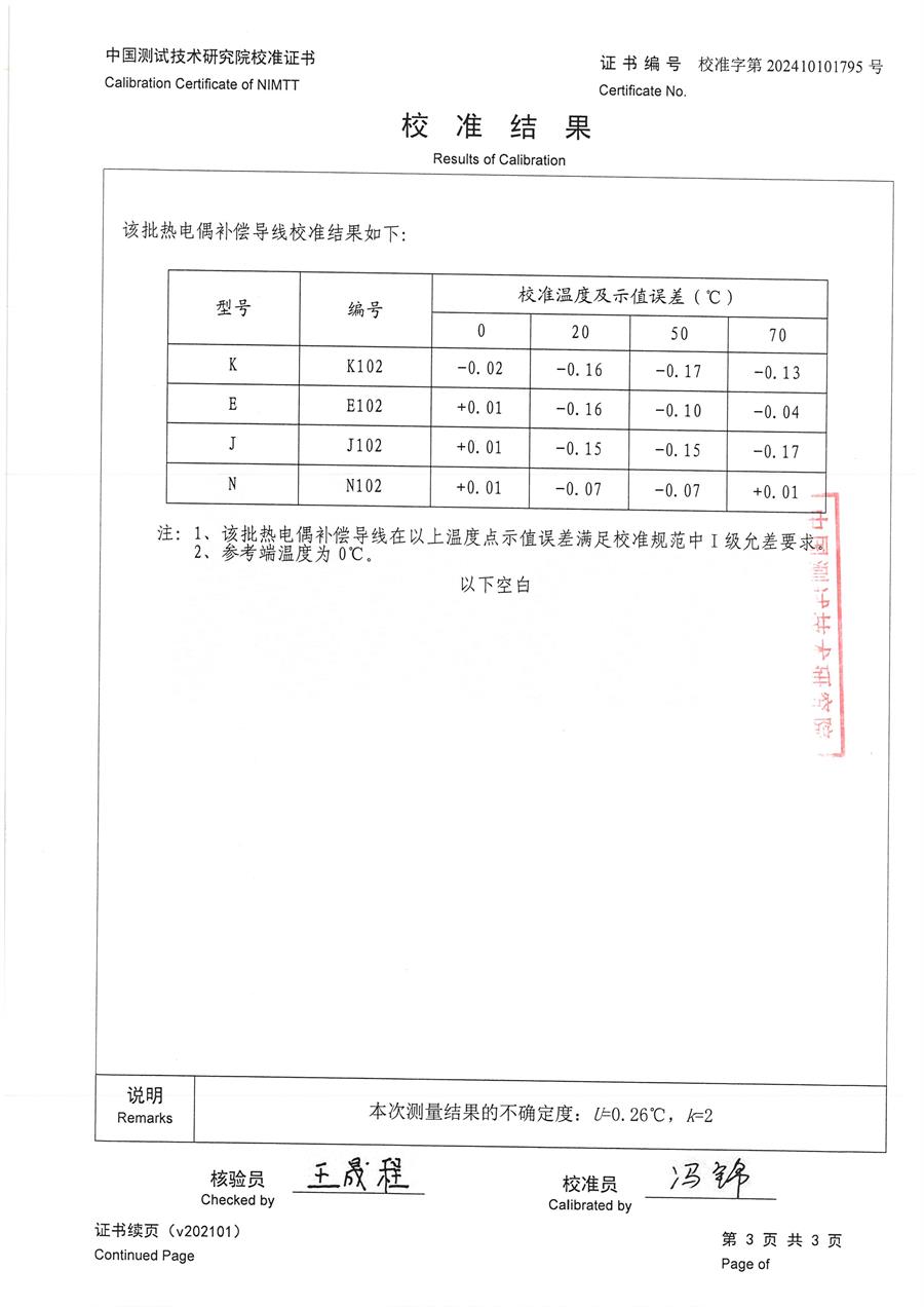 熱電偶用補償導線KEJN校準證書 2024-10-17 本文被閱讀 7337 次
