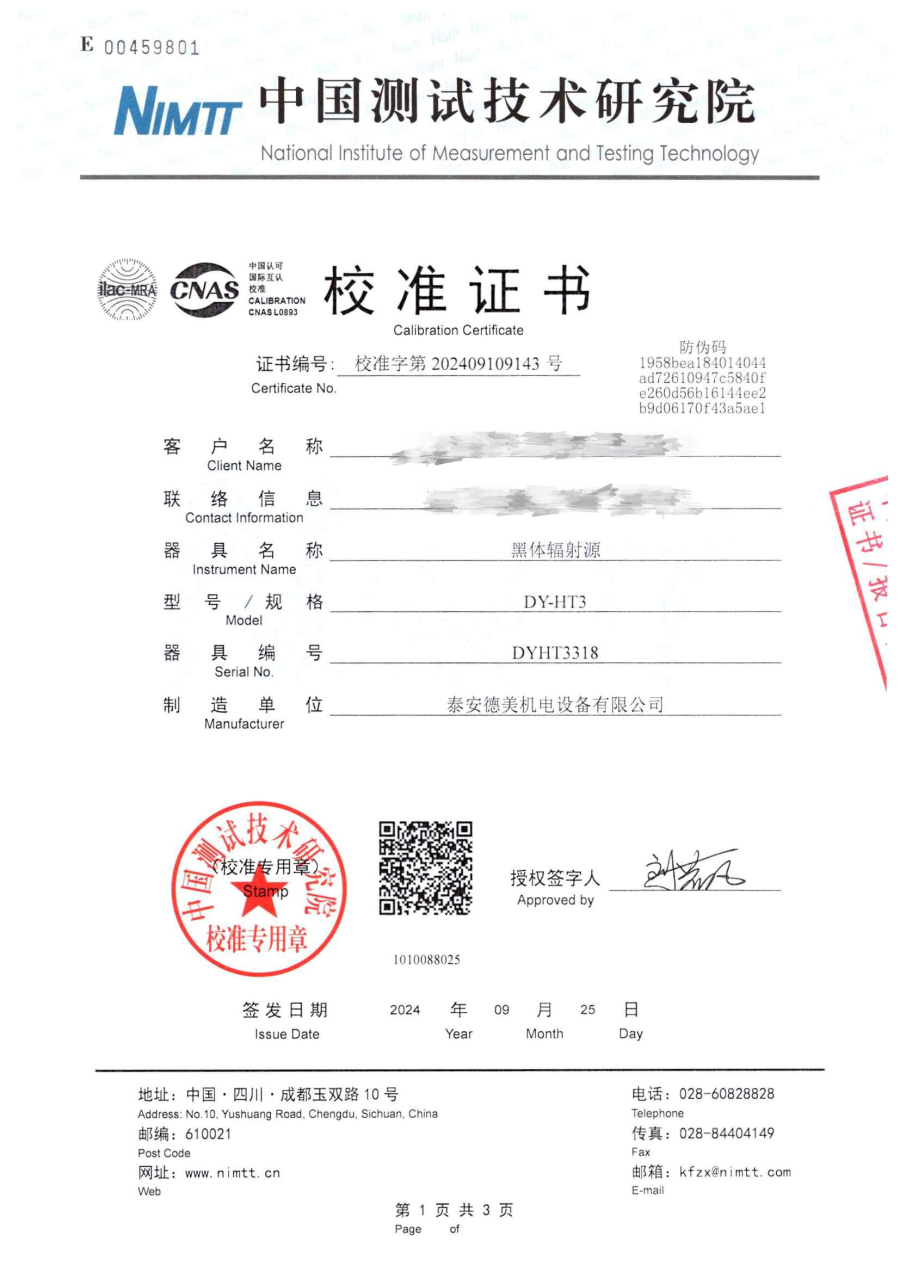 高溫腔式黑體校準(zhǔn)證書 2024-10-21 本文被閱讀 7871 次