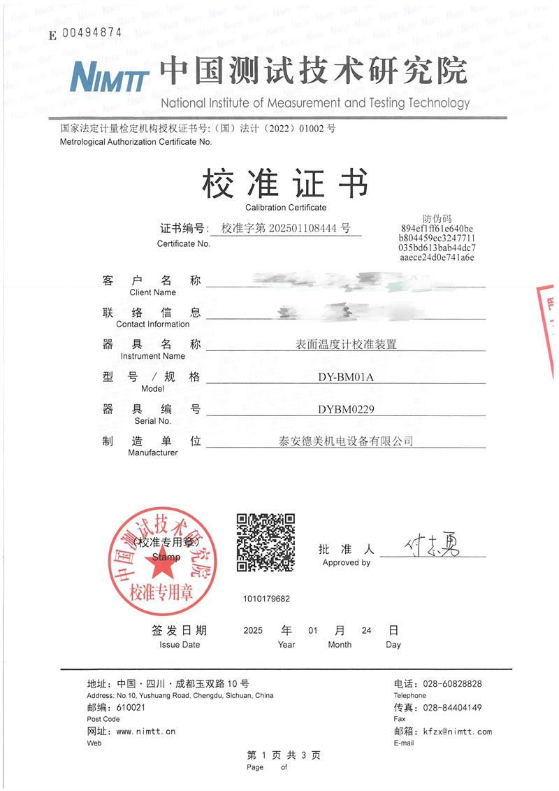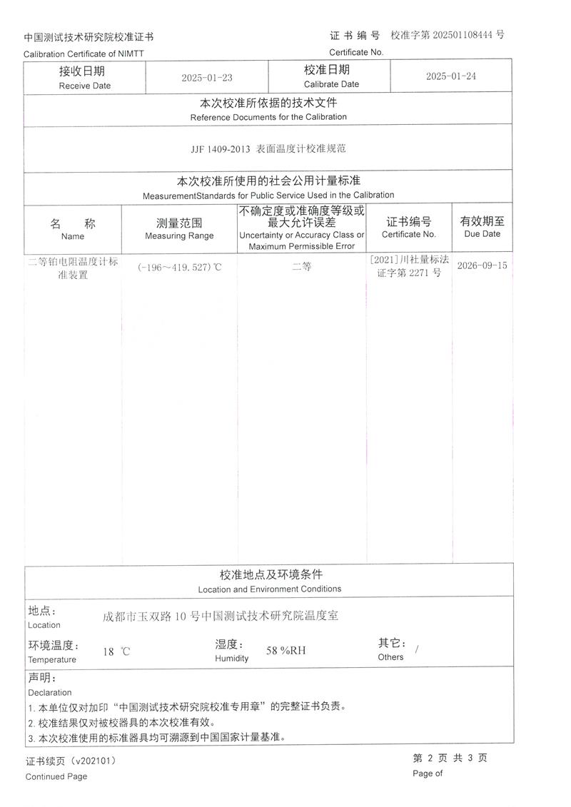 表面溫度計(jì)校準(zhǔn)裝置-校準(zhǔn)證書 2025-2-14 本文被閱讀 6212 次