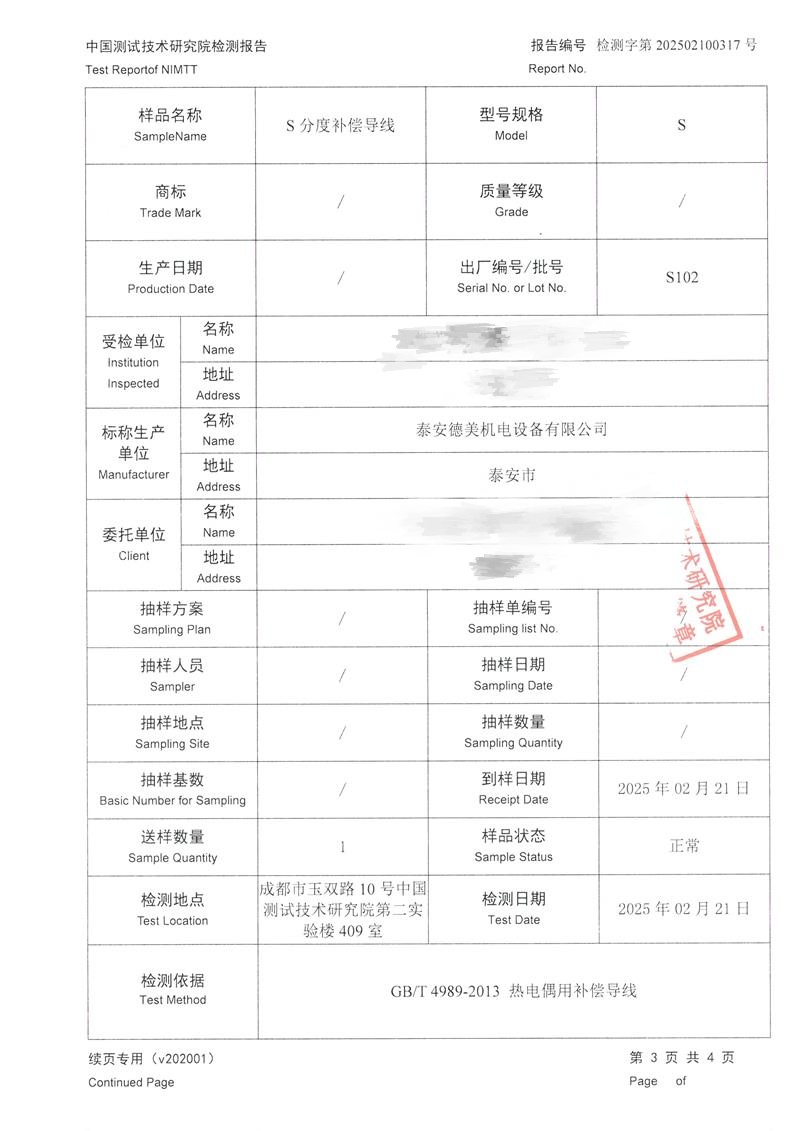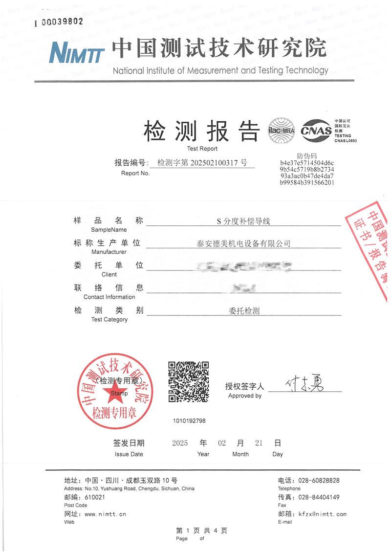 S分度補償導(dǎo)線檢測報告 2025-2-25 本文被閱讀 5428 次