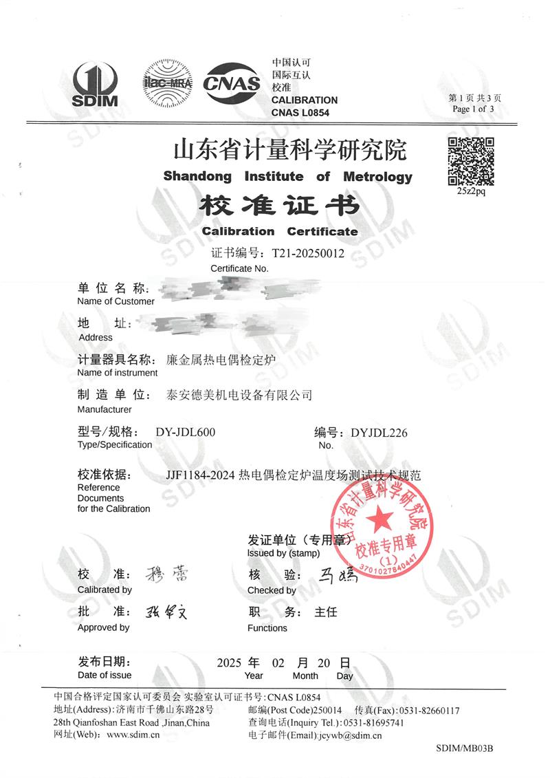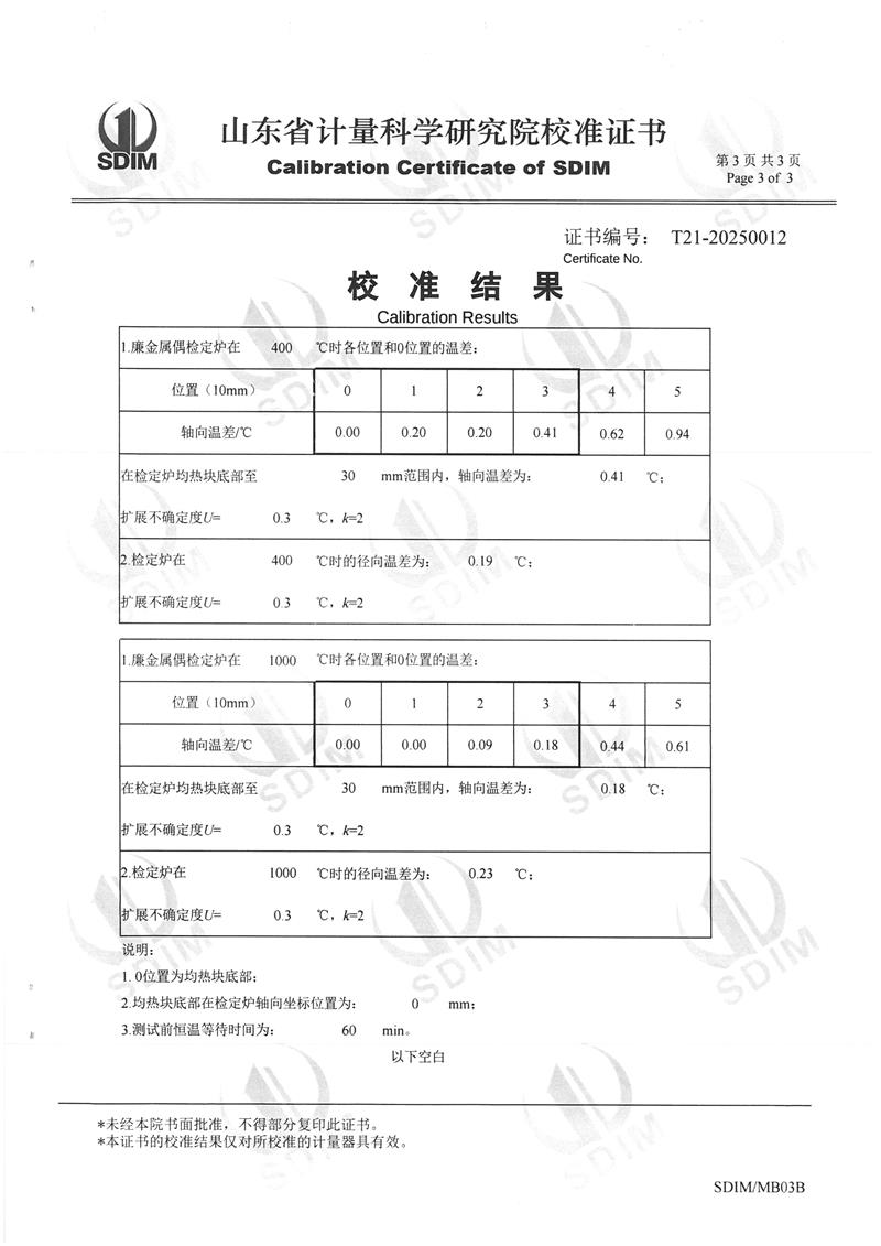 廉金屬熱電偶檢定爐(300~1200℃)校準證書 2025-2-26 本文被閱讀 5259 次
