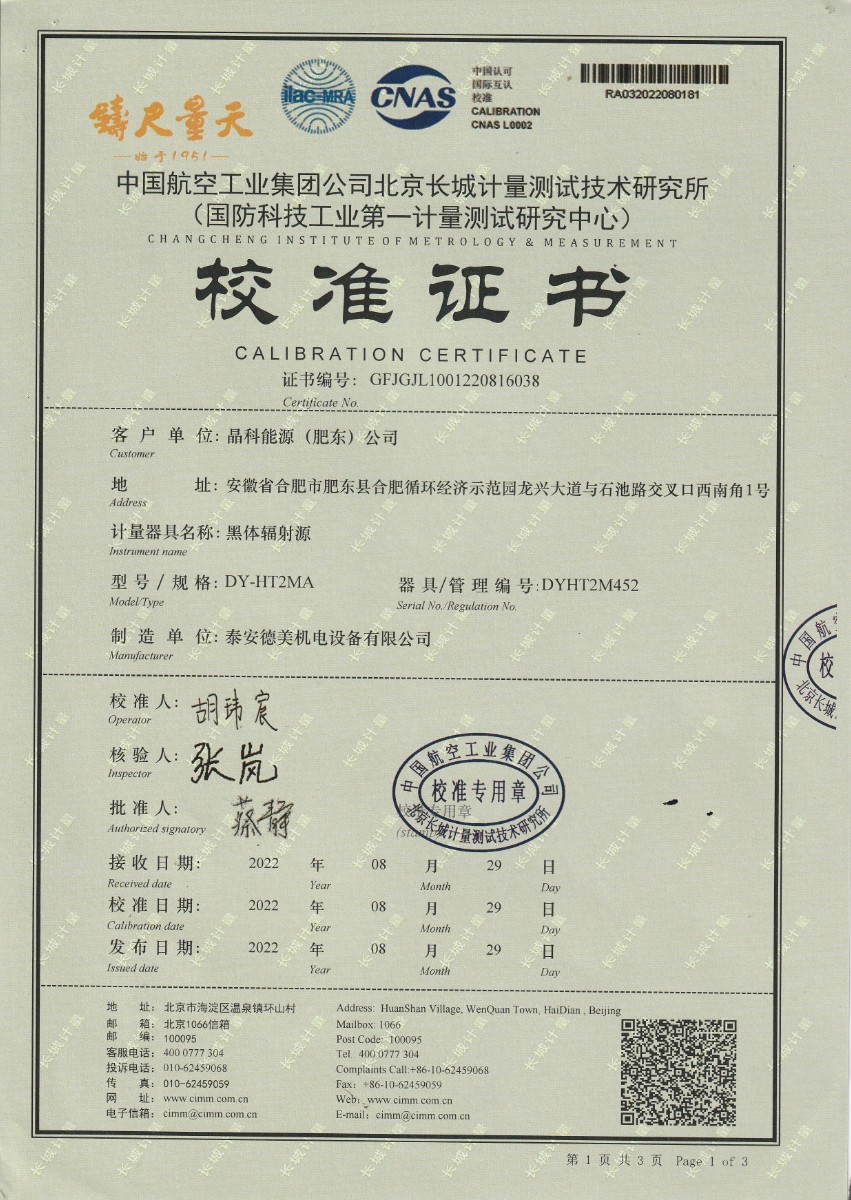 晶科能源(肥東)公司-黑體輻射源 2022-9-5 本文被閱讀 13528 次