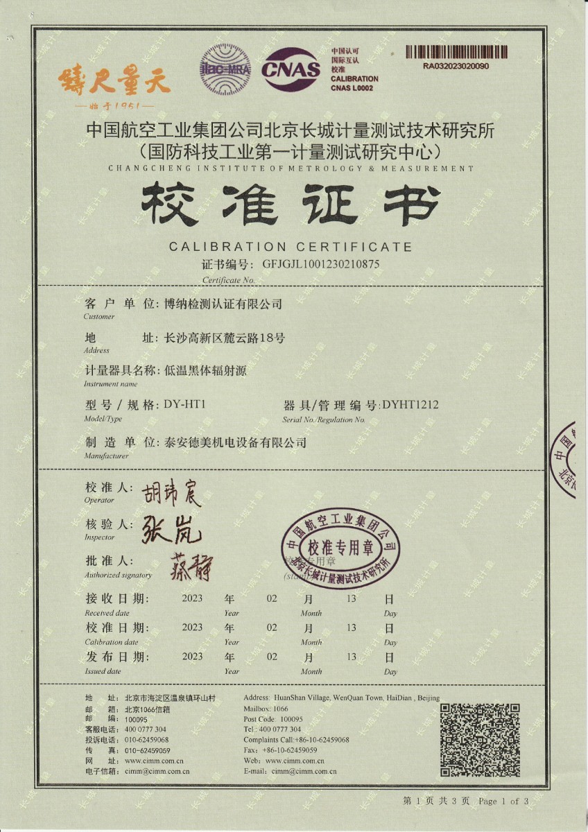 | 上一條:晶科能源(海寧)有限公司 冷鏡式露點(diǎn)儀(溫度) 校準(zhǔn)證書 | 下一條:低溫干體爐-校準(zhǔn)證書 |