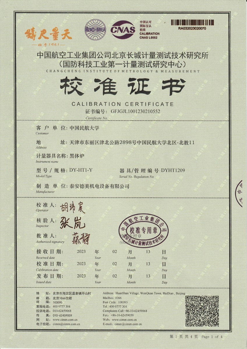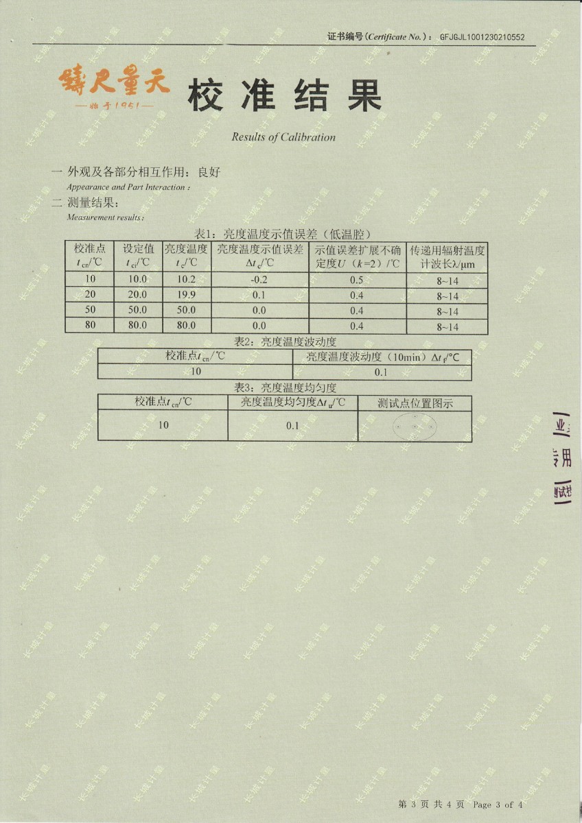 | 上一條:煙臺信泰檢測技術(shù)服務(wù)有限公司 黑體爐 校準(zhǔn)證書 | 下一條:低溫干體爐-校準(zhǔn)證書 |