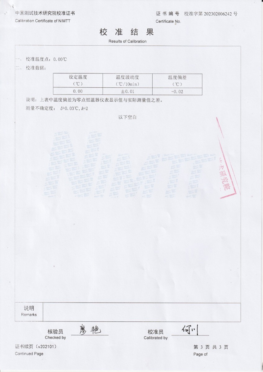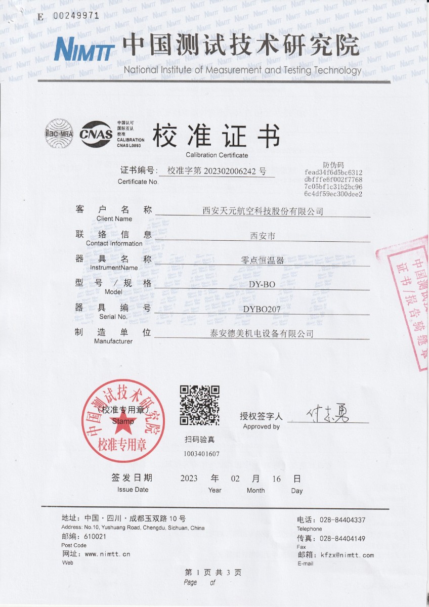 西安天元航空科技股份有限公司 零點(diǎn)恒溫器 校準(zhǔn)證書 2023-2-25 本文被閱讀 13368 次
