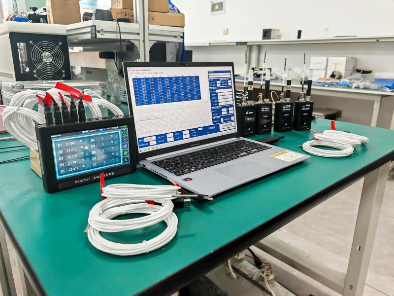 下圖(以DY-XJY03-1型號為例)所示①-⑩通道為可選擇傳感器溫度通道,可選擇類型有(熱電阻(PT100),熱電偶(K,E,J,T,B,N,R,S)),可工作在熱電阻模式或熱電偶模式下,通過無線傳輸把采集到的10通道溫度數(shù)據(jù)發(fā)送到接收器,10通道溫度采集主機還具有2路RS485、1路type-C轉(zhuǎn)串口通訊功能,可以跟具有標(biāo)準(zhǔn)modbus-RTU通訊功能的上位機或觸摸屏設(shè)備通訊,實現(xiàn)現(xiàn)場數(shù)據(jù)采集功能,從而具有更多的應(yīng)用場合。