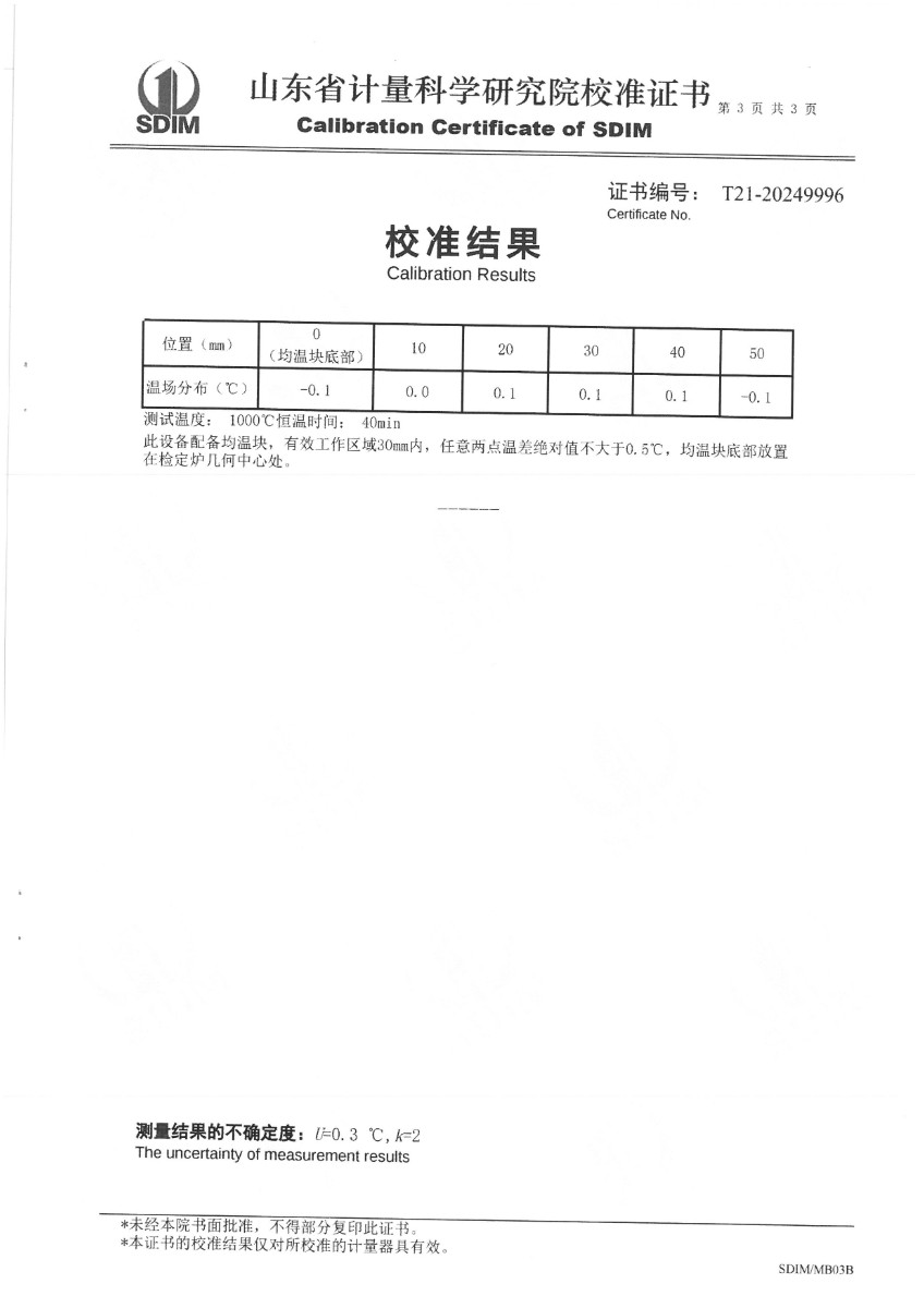 熱電偶檢定爐校準(zhǔn)證書