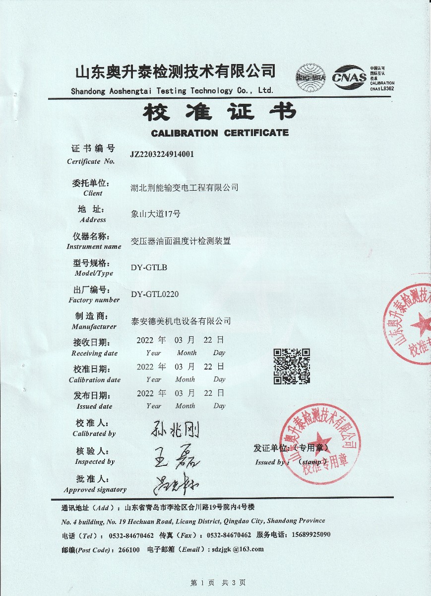 湖北荊能輸變電工程有限公司-變壓器油面溫度計檢測裝置 2022-3-28 本文被閱讀 17074 次