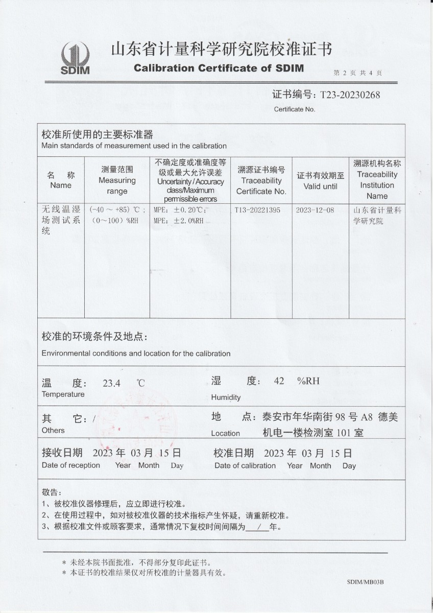 | 上一條:廈門(mén)新能安科技有限公司 溫濕度檢定箱 校準(zhǔn)證書(shū) | 下一條:低溫干體爐-校準(zhǔn)證書(shū) |