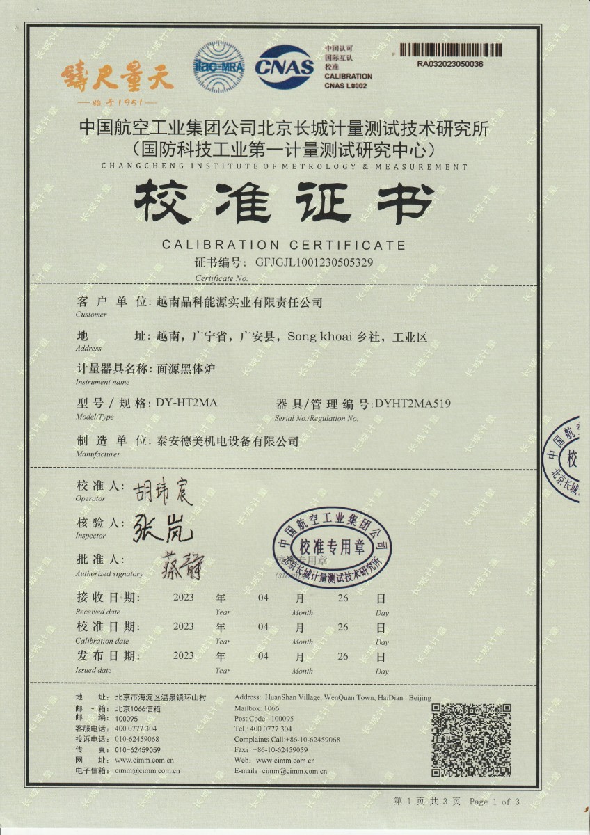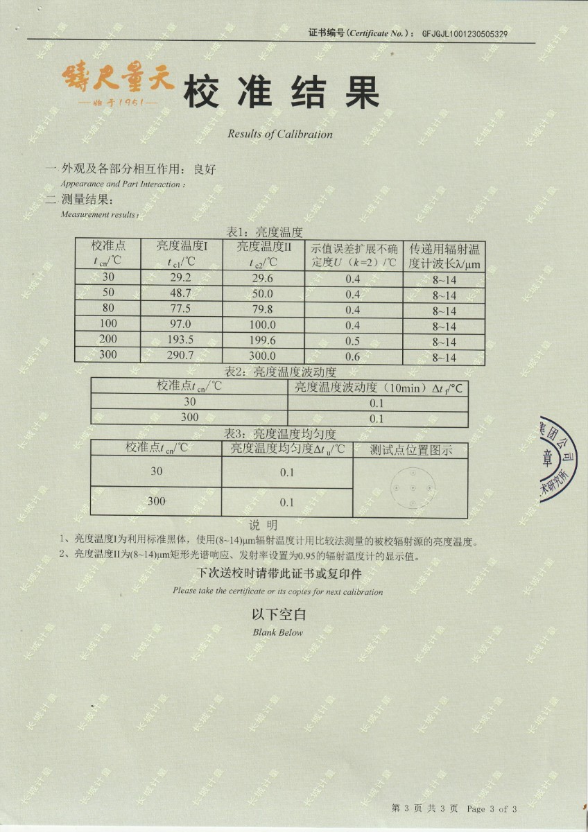 | 上一條:淮安捷泰新能源科技有限公司 黑體輻射源 校準(zhǔn)證書 | 下一條:低溫干體爐-校準(zhǔn)證書 |