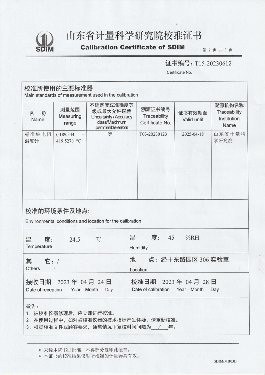 魯南中聯(lián)水泥有限公司 高精度數(shù)字溫度計 校準證書 2023-5-18 本文被閱讀 12205 次
