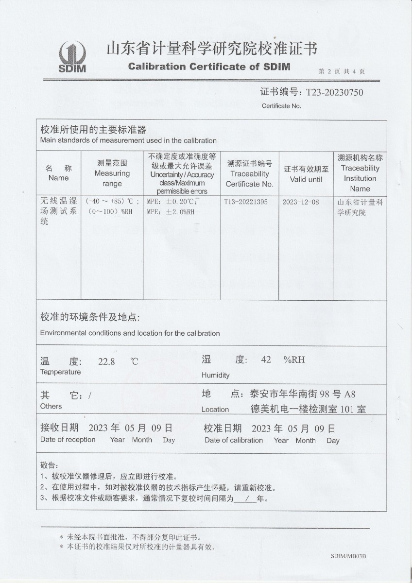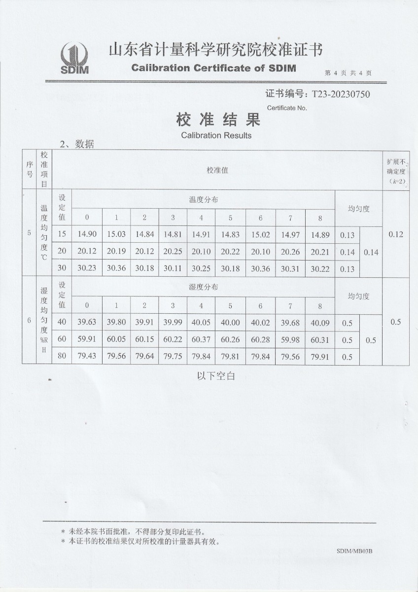 越南晶科能源實(shí)業(yè)有限責(zé)任公司 溫濕度標(biāo)準(zhǔn)箱 校準(zhǔn)證書(shū) 2023-6-1 本文被閱讀 13309 次