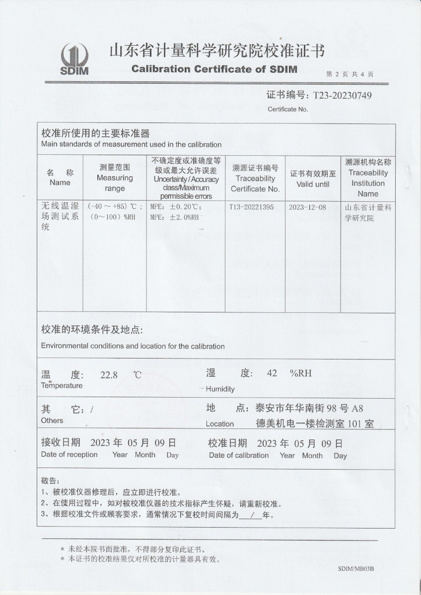 上一條:越南晶科能源實業(yè)有限責任公司 溫濕度標準箱 校準證書下一條:低溫干體爐-校準證書