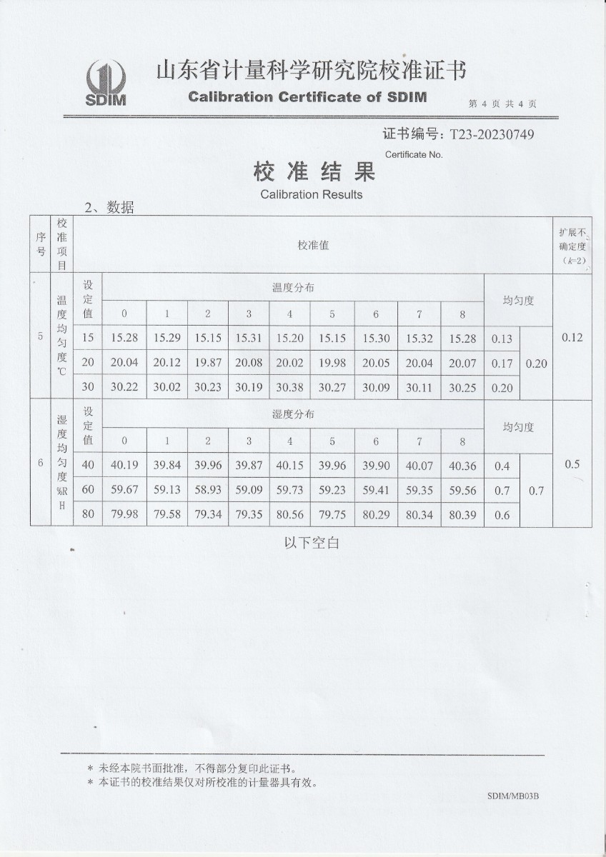 新疆中測測試有限公司 溫濕度標準箱 校準證書 2023-6-1 本文被閱讀 12879 次