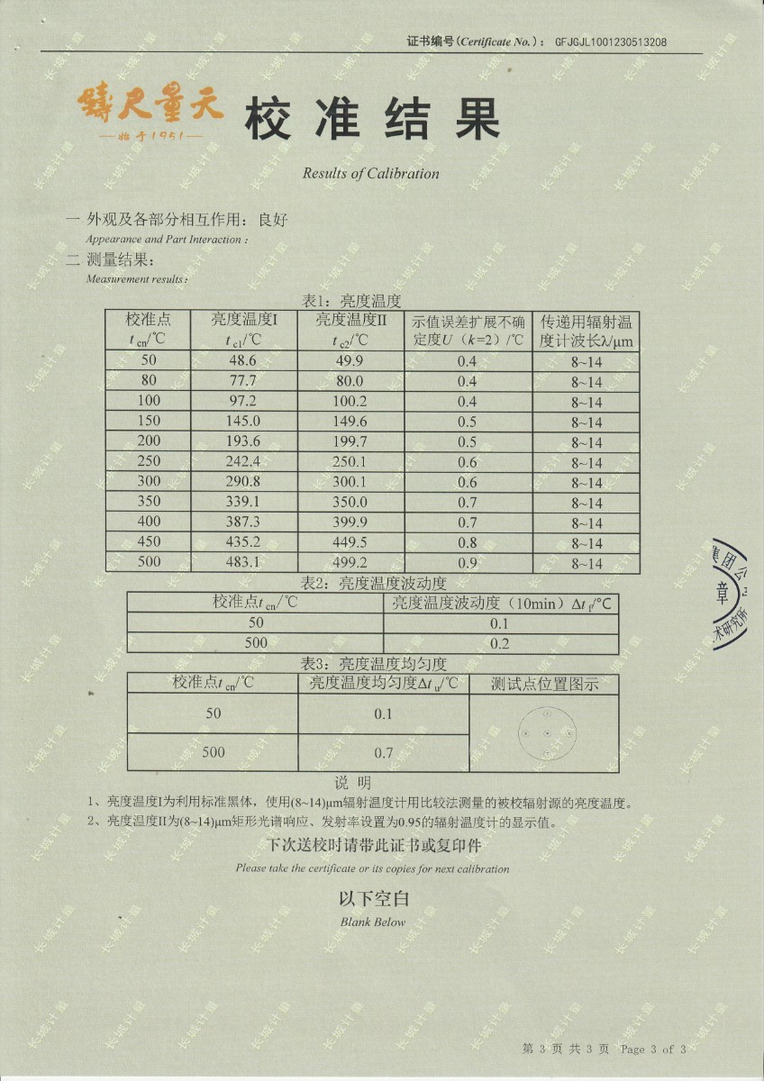 | 上一條:方圓檢測認(rèn)證集團(tuán)有限公司 中溫黑體校準(zhǔn)證書 | 下一條:低溫干體爐-校準(zhǔn)證書 |