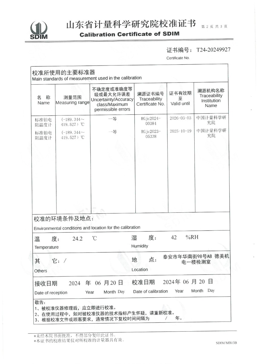 高精度恒溫油槽(90~300℃)校準(zhǔn)證書 2024-6-26 本文被閱讀 6339 次