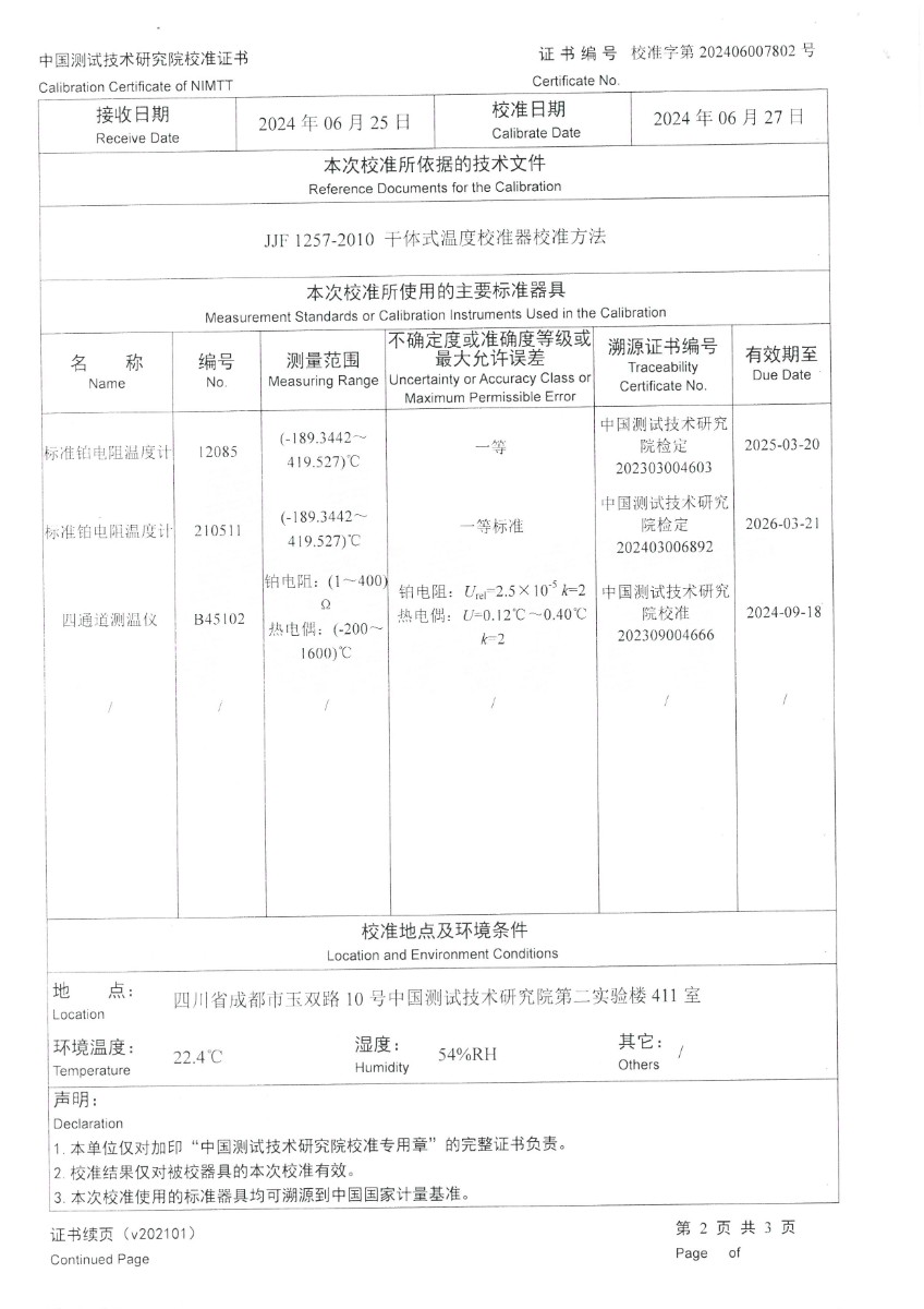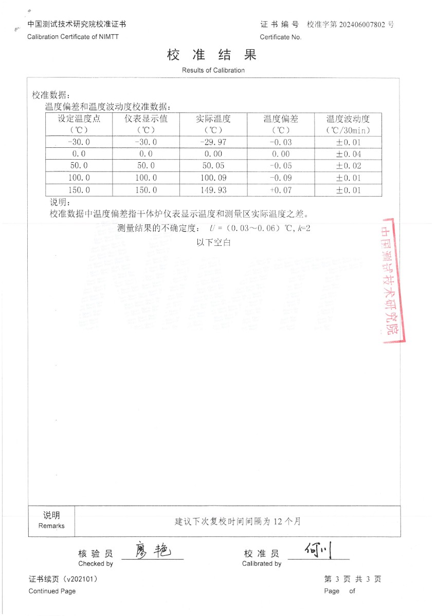 低溫干體爐(-30~150℃)校準(zhǔn)證書 2024-7-1 本文被閱讀 6257 次