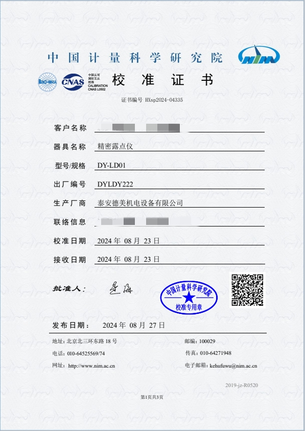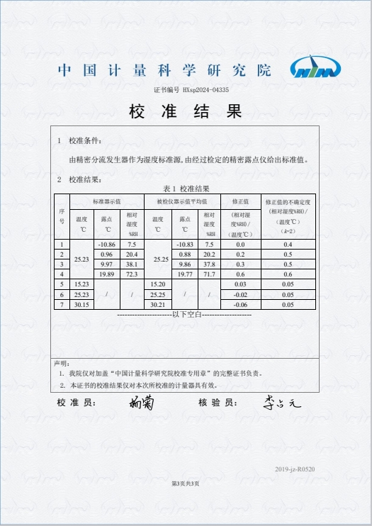 露點儀校準證書 2024-9-3 本文被閱讀 8343 次