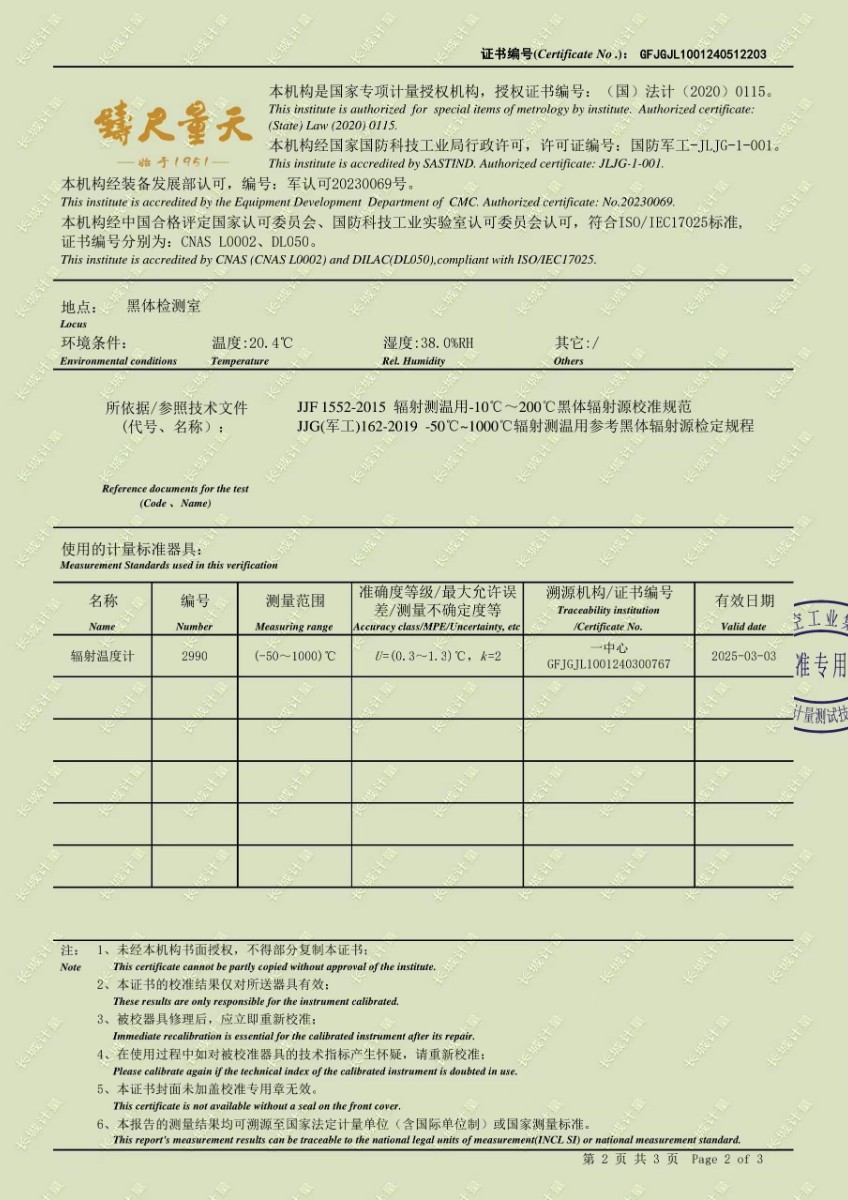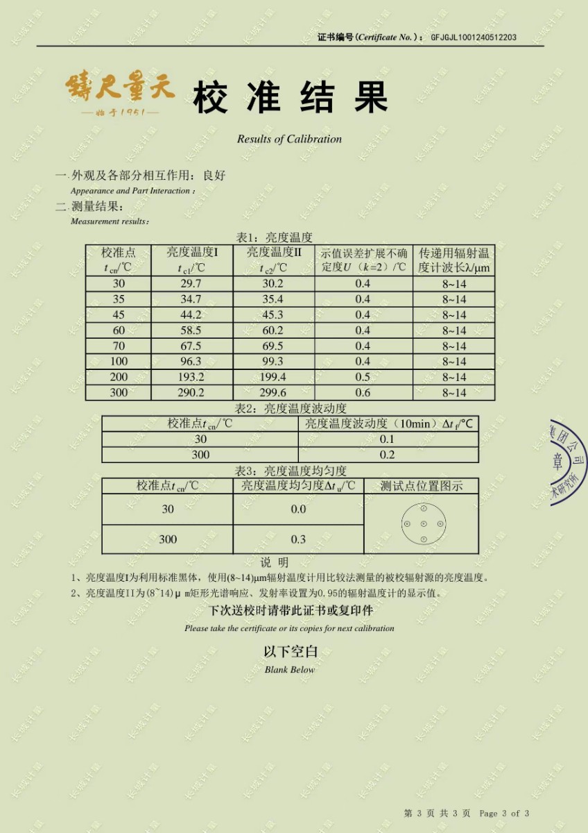高精度低溫黑體241校準(zhǔn)證書