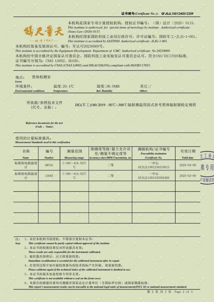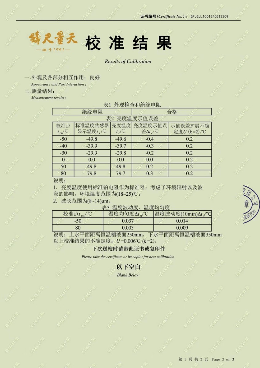 低溫浴式黑體輻射源校準(zhǔn)證書 2024-5-31 本文被閱讀 9125 次